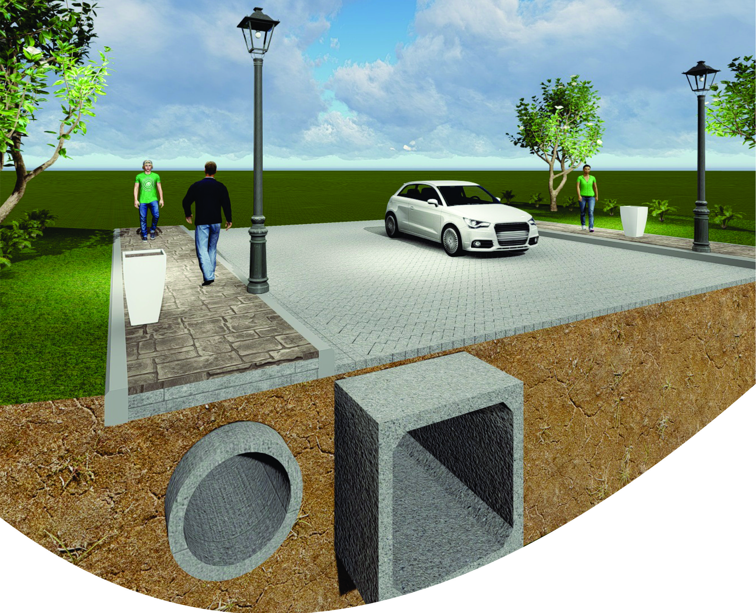 - Saluran air seperti jalan masuk, parit, gorong-gorong dan pipa beton untuk sistem drainase air yang tepat. Semua dirancang dengan tepat untuk menghindari banjir dan kebocoran yang dapat merusak kualitas tanah di sekitarnya.